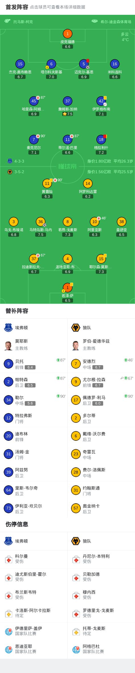北京時(shí)間1月8日英格蘭足球頂級(jí)聯(lián)賽 聯(lián)賽 第21輪,埃弗頓主場(chǎng)對(duì)陣?yán)顷?duì)。埃弗頓邁克爾-基恩破門(mén)。狼隊(duì)馬特烏斯-馬內(nèi)破門(mén)。最終比分埃弗頓 1-1 狼隊(duì)。