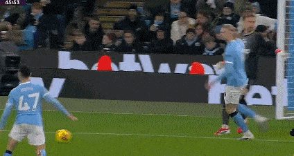 第82分鐘,哈蘭德禁區(qū)左路強(qiáng)行超車,一腳爆射擊中邊網(wǎng)。