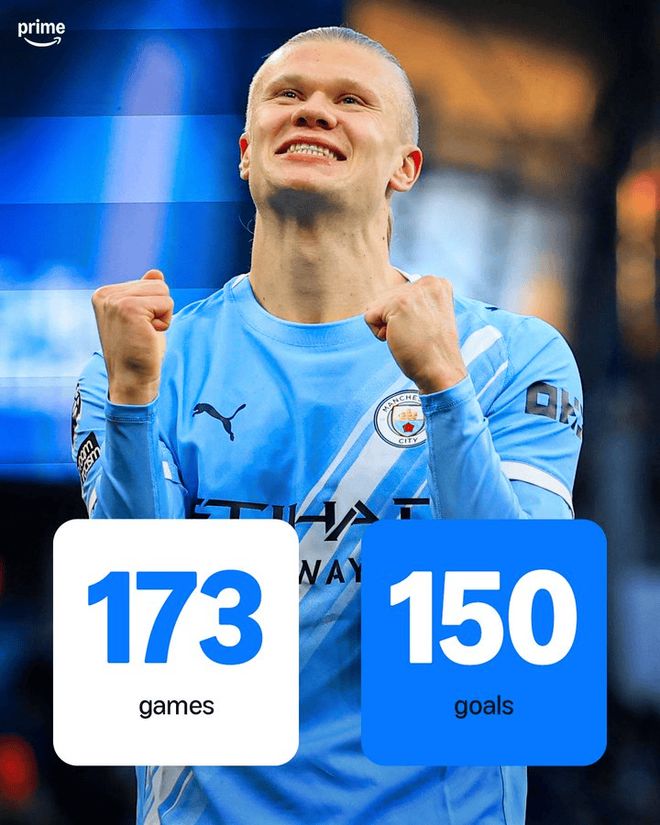哈蘭德迎來(lái)曼城生涯150球里程碑,哈蘭德僅用了173場(chǎng)比賽便達(dá)成這一成就,刷新了英超自成立以來(lái)的最快紀(jì)錄,領(lǐng)先其他球員至少28場(chǎng)比賽。