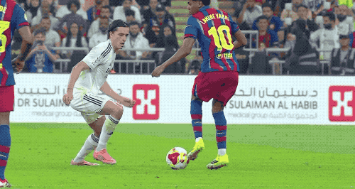 第26分鐘,和孔德打出熟悉的配合后,亞馬爾加速下底傳中,皮球被擋了一下,巴爾德做球,拉菲尼亞起腳爆射,皮球打得有些正。